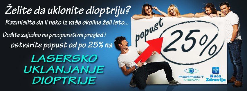Da li i Vama problemi sa vidom otežavaju svakodnevnicu te maštate o zdravom i jasnom pogledu na svet? Niste jedini. Stoga razmislite da li u Vašoj okolini postoji neko (član porodice, prijatelj, komšija, kolega sa posla itd.) ko bi takođe želeo da zauvek kaže zbogom svojoj dioptriji i pozovite ga da Vam se pridruži u novoj akciji “Perfect Vision”-a: Program prijateljstva! Dođite zajedno na preoperativni pregled i mi ćemo nagraditi vaše prijateljstvo, darujući svakom od vas po 25% POPUSTA na intervenciju laserskog uklanjanja dioptrije! Jer sve je lakše i lepše uz prijatelje!