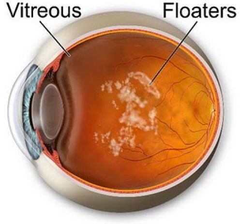 Kod mladih osoba je staklasto telo potpuno prozirno. Tokom života se kod nekih osoba pre, a kod nekih kasnije pojavljuju fiziološka zamućenja u narodu poznatija kao „mušice“ (lat. muscae volitantes, engl. floaters) (Slika 1). To su zamućenja različitog oblika (poput pokretnih tračica, končića, itd.), najbolje uočljivih pri pogledu ka svetloj pozadini (beo zid, vedro nebo). Ova zamućenja se ne leče, ne predstavljaju opasnost po naš vid i vremenom se naš mozak navikne na njihovo stalno prisustvo u vidnom polju i počne da ih zanemaruje.