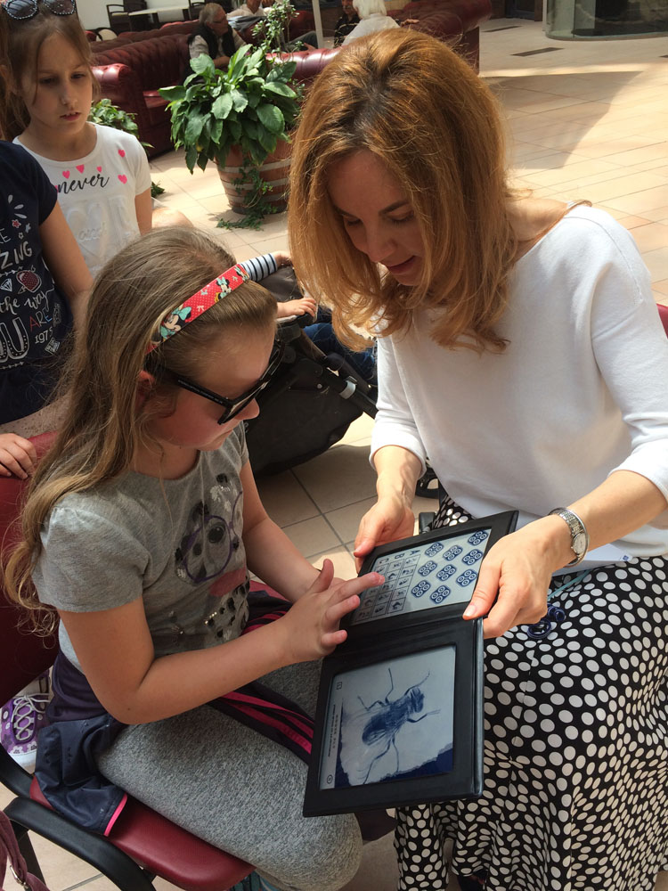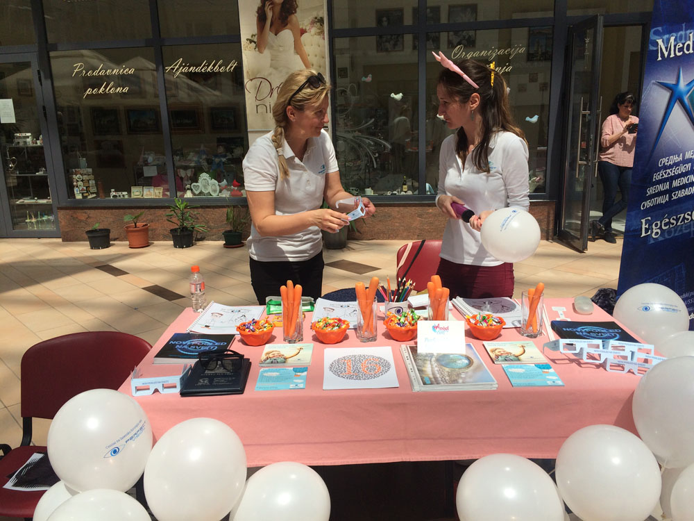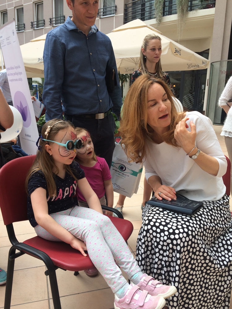 Dr Branka Ivošević je vršila besplatne očne preglede dece na sajmu, dajući svakom roditelju preporuku za eventualno dalje lečenje dece u cilju pravilnog razvoja dečijeg vida.