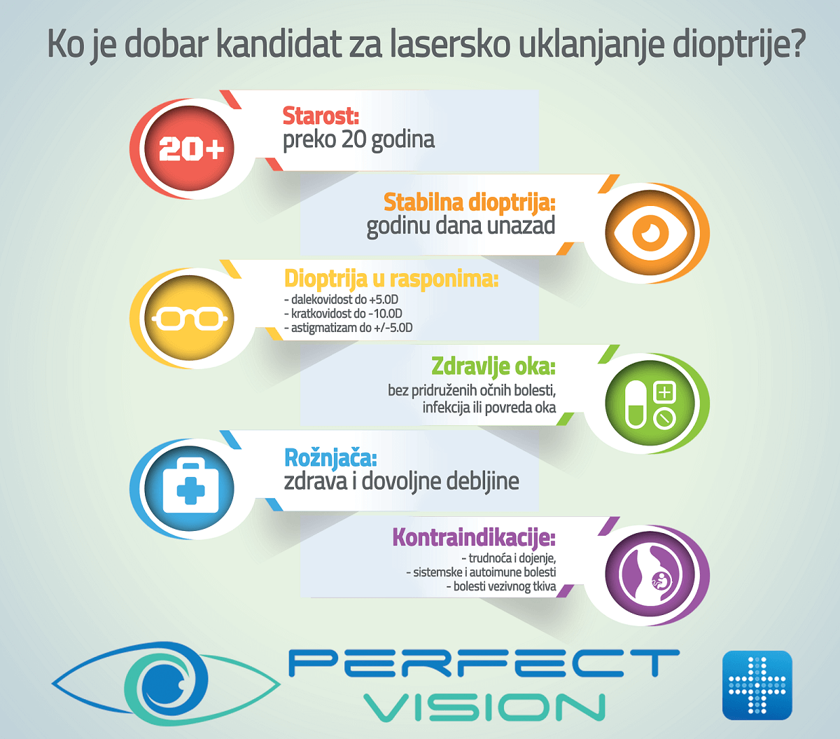 Svaki pacijent koji ima dioptriju unutar ovog raspona može biti pogodan kandidat za lasersko skidanje dioptrije, ali je potreban detaljan oftalmološki preoperativni pregled da bi se ustanovilo postoje li stanja (trudnoća, dojenje), opšte ili očne bolesti koje bi mogle biti kontraindikacija za skidanje dioptrije. Neophodno je da osoba kojoj se skida dioptrija ima navršenih 20 godina starosti i da je dioptrija stabilna unazad godinu dana. Ko je dobar kandidat za lasersko uklanjanje dioptrije