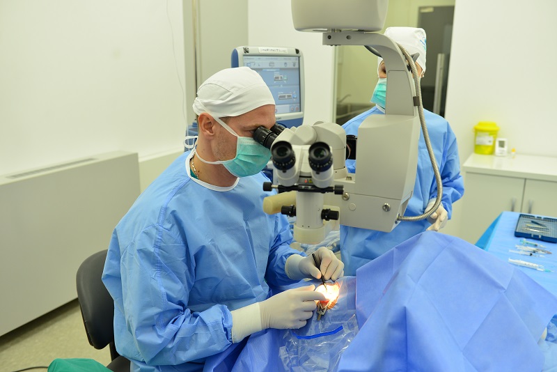 Tokom čitave operacije pacijent je u ležećem položaju na udobnom operacionom stolu. Glava i oči su u prirodnom položaju, sa izuzetkom malog aparata koji sprečava treptanje pacijenta tokom operacije ali mu ne nanosi bol. Sve gore navedene tačke u procesu fakoemulzifikacije INFINITI Vision sistemom izvode se uz aplikaciju topikalnog, kapljičnog anestetika, potpuno su bezbolne i ne zahtevaju bilo kakvo naprezanje pacijenta.