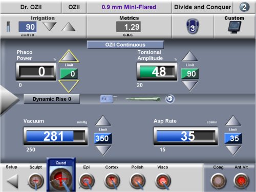 Efekat sečenja višestruko ubrzava sam proces ekstrakcije sočivnih masa i smanjuje mogućnost disperzije fragmenata sočiva po prednjoj očnoj komori ili iza dužice, što je takođe češći slučaj kod tradicionalnih ultrazvučnih aparata. Pored dokazane efikasnosti u hirurgiji, zbog nižih temperatura na kojima sonda funkcioniše, osigurana je bezbednost oka od termalnih povreda. OZil torziona sonda je napravljena od titanijuma, laka je za rukovanje i omogućava optimalnu primenu energije koja odgovara tehnici samog hirurga i individualnim potrebama svakog pacijenta. Pruža hirurgu veću kontrolu tokom same operacije, čime se postiže bezbedna operacija i bolji postoperativni rezultati. Hirurgu je na raspolaganju upotreba ultrasoničnog oscilovanja, tradicionalnog ultrazvuka ili kombinacija oba profila.