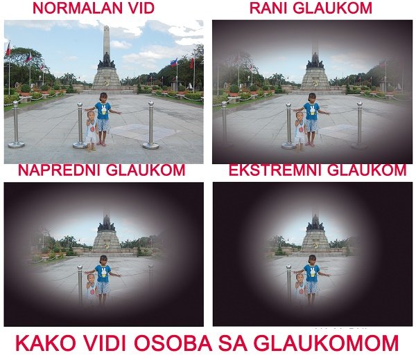 Glaukom je naziv za grupu očnih bolesti kojima je zajedničko oštećenje vidnog živca, strukture koja ima ulogu da sprovodi vizuelne informacije od oka do centara u mozgu za vid. Propadanje očnog živca dovodi do sužavanja vidnog polja, zbog čega pacijent na kraju vidi kao kroz cev.